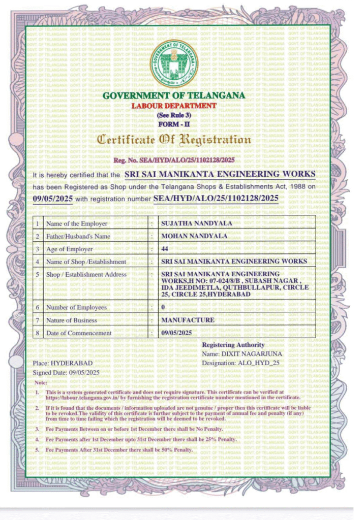 At Sri Sai Manikanta Engineering Works, we believe that precision engineering and environmental responsibility are not mutually exclusive. Our commitment to sustainability is woven into the fabric of our operations, ensuring that we build a successful business while positively contributing to our community and planet. We focus on creating durable, efficient products that stand the test of time, which is the most fundamental form of sustainability.